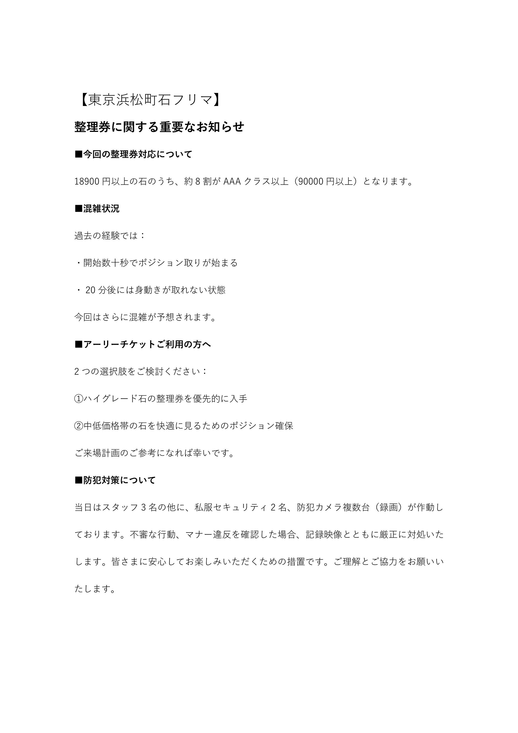 整理券に関する重要なお知らせ